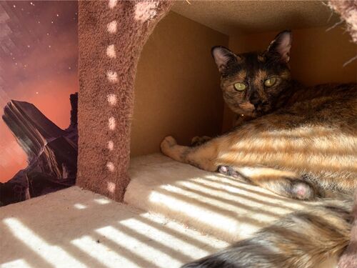 ハルはキャットタワーの箱の中でくつろいでいる。本当に暖かい1日だった。向かって右のハルの足、ピンク色にはなっているが範囲が小さくなったきた。 ハルの寝床のソファに毛布を敷いて患部が擦られることが減った、、、。獣医の先生の言う通りだったかな 横…